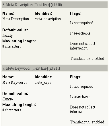 The <meta> tags (description, keywords, etc.) are determined by the settings in the system configuration file ( site.ini). Exponential adds the tags automatically to the <head> section of the generated XHTML document.