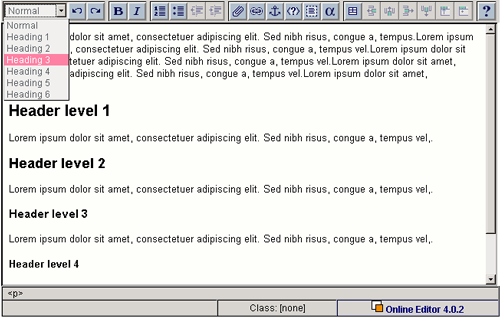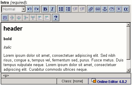 Formatting content in the Online Editor using header, bold, italic and plain text.
