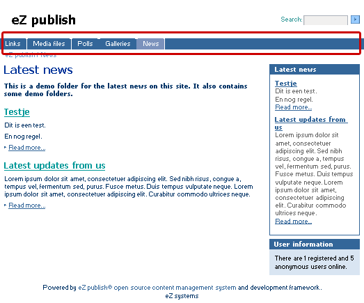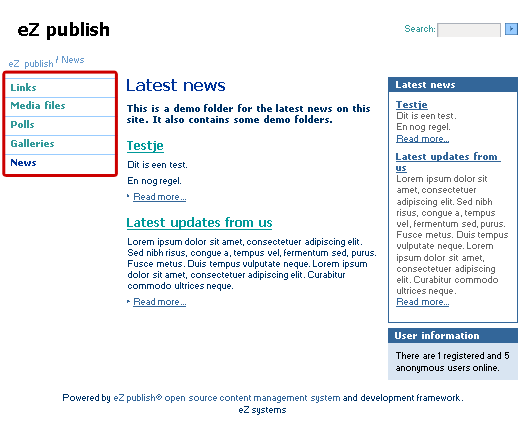For example, eZ.no as a corporate site consists of pages about the company and its products and services. In addition, there are other complex sections designed for specific audiences, such as the eZ partners area and the eZ community pages. These sections need specially designed portal pages to link to all of the section's components, such as forums, news, blogs, articles, etc.