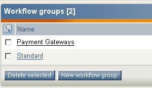 Click the New workflow group button. The New workflow group view will be displayed. Enter a name for the workflow group, such as 'Payment Gateways', then click the OK button.