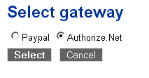 For this checkout example, choose the Authorize.Net option and click Select. This will start the payment gateway workflow.
