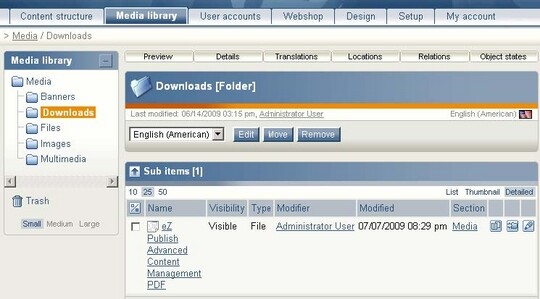 Now, log in to the front-end of the site using the Test User account you previously created. If you try to access the file directly on the front end (through a URL such as "yoursite.com/Media/Downloads/eZ-Publish-Advanced-Content-Management-PDF"), you should get an "Access denied" error.