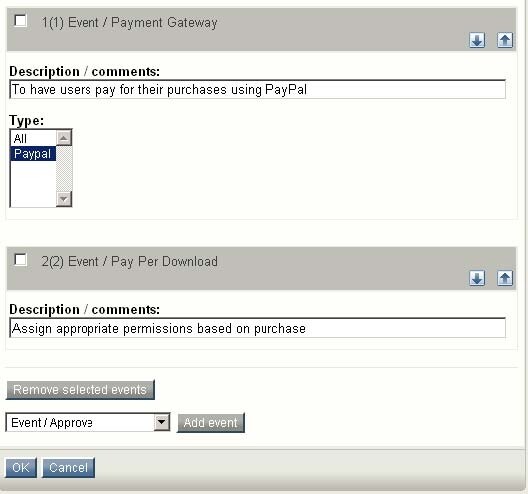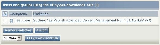 You can now test your workflow event by buying the book product you created. Use the "Test User" account on the front-end, add the product to your shopping cart, initiate the checkout process, then pay for the product using your PayPal Sandbox test buyer account. Then, log in to the Administration Interface using your Administrator user account, navigate to the "Pay-per-download" role, and see that it has been assigned correctly. The "Test User" should be using the "Pay-per-download" role, limited to the download file.