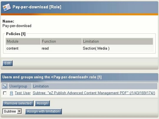Then, see whether that Test User user can access "yoursite.com/Media/Downloads/eZ-Publish-Advanced-Content-Management-PDF". When you have confirmed this, remove the role assignment.